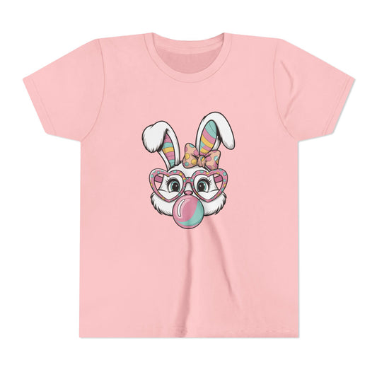 Kids Bunny Bubblegum T-Shirt — Cute Easter Bunny with Glasses & Bow Youth Tee