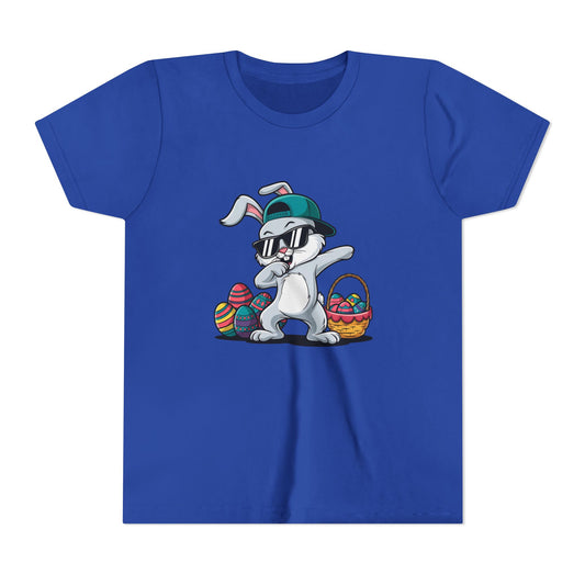 Youth Tee — Cool Dabbing Easter Bunny with Sunglasses & Egg Basket
