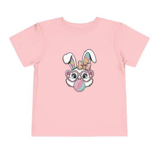 Toddler Tee — Cute Bunny with Glasses & Bubblegum Graphic