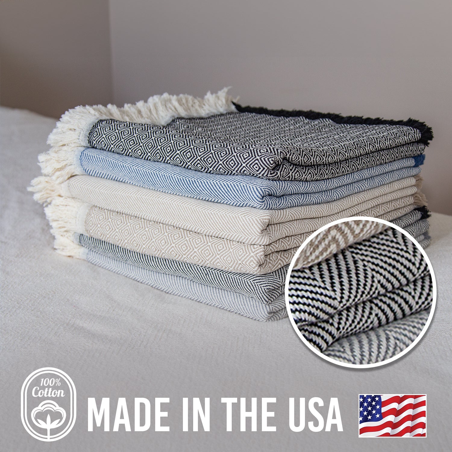 Cozy up in soft, breathable comfort with our 100% cotton Patterned Throw Blanket. Our large throw showcases the beauty cotton can bring to any room, with two design options and four rich colors. This blanket boasts an effortless style and quick comfort that’s perfect for layering over your sofa, bed, or favorite chair.