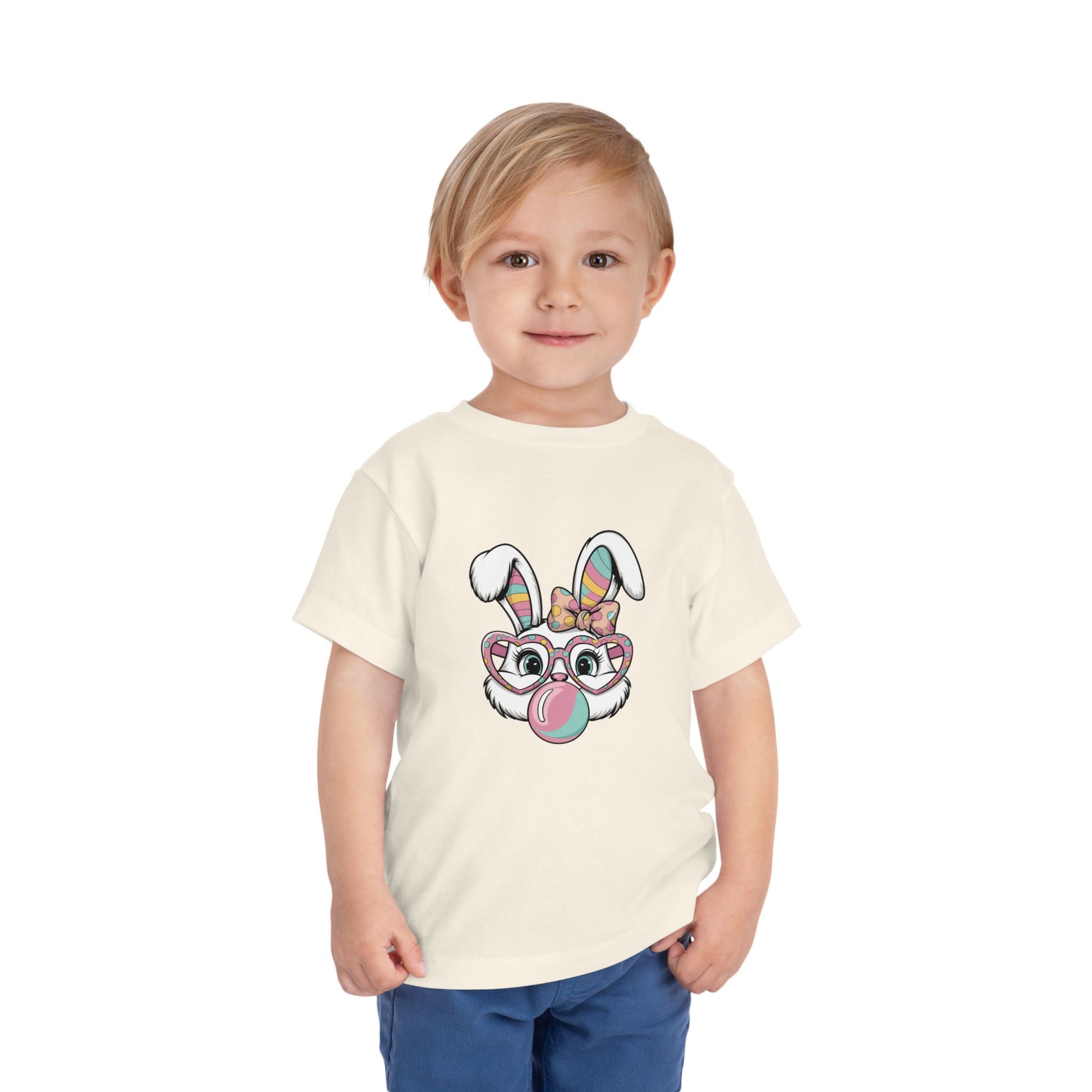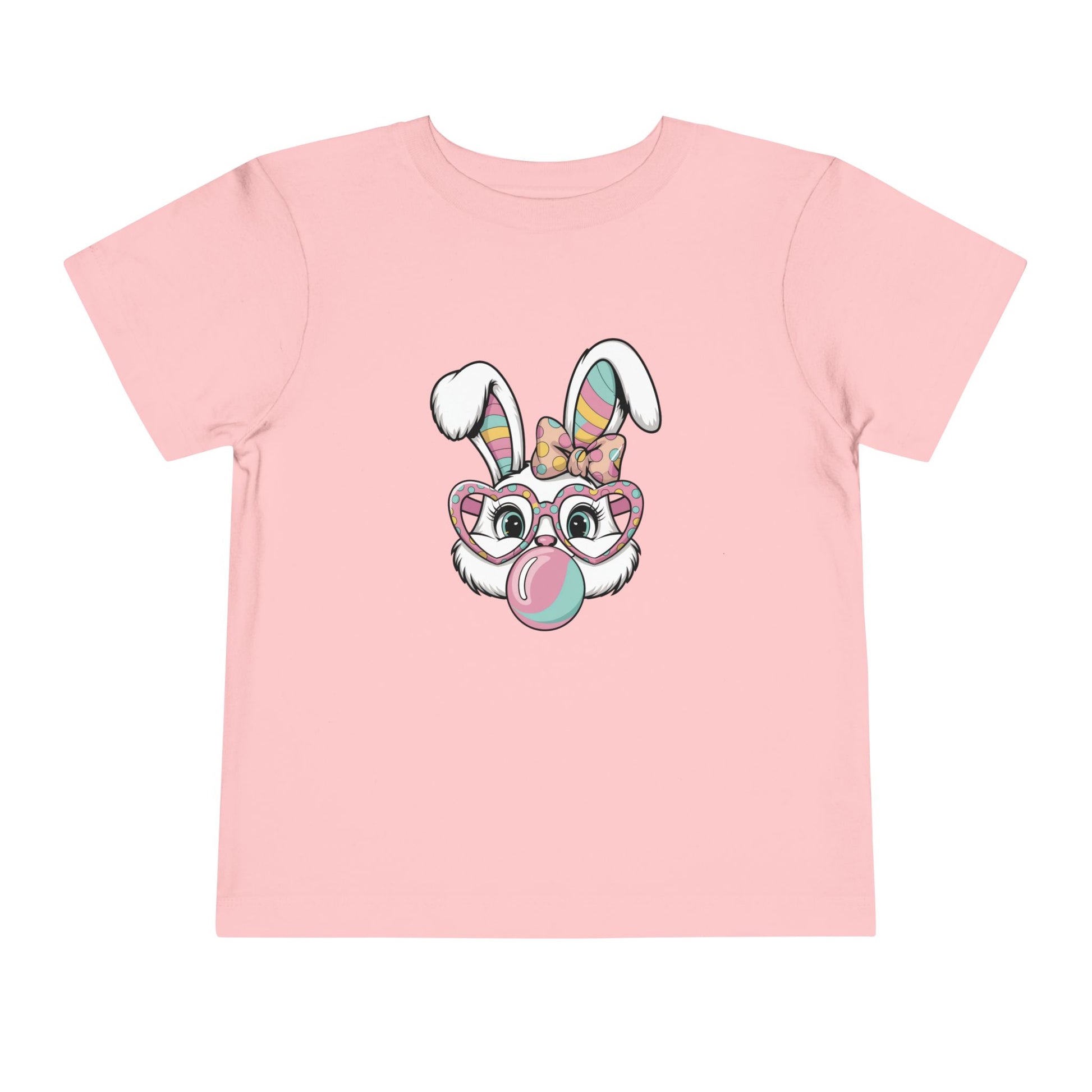 Toddler Tee — Cute Bunny with Glasses & Bubblegum Graphic