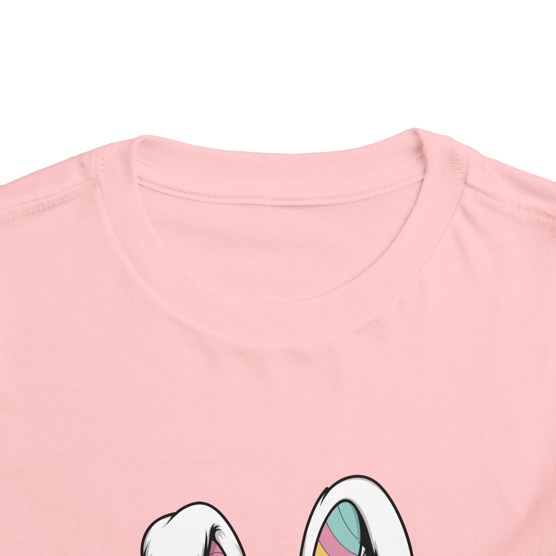 Soft, sunny afternoons and tiny giggles—this toddler tee brings playful charm to everyday adventures. A gentle cotton knit holds a bright bunny face printed on the chest: oversized glasses, a rainbow ear, and a pastel bow that reads like a storybook moment. Lightweight and breathable, the shirt moves with curious explorers—climbing, skipping, and sunning on the porch. It sits simply in their wardrobe, ready for spring picnics, Easter egg hunts, or everyday dress-up where comfort matters as much as the smile it sparks.